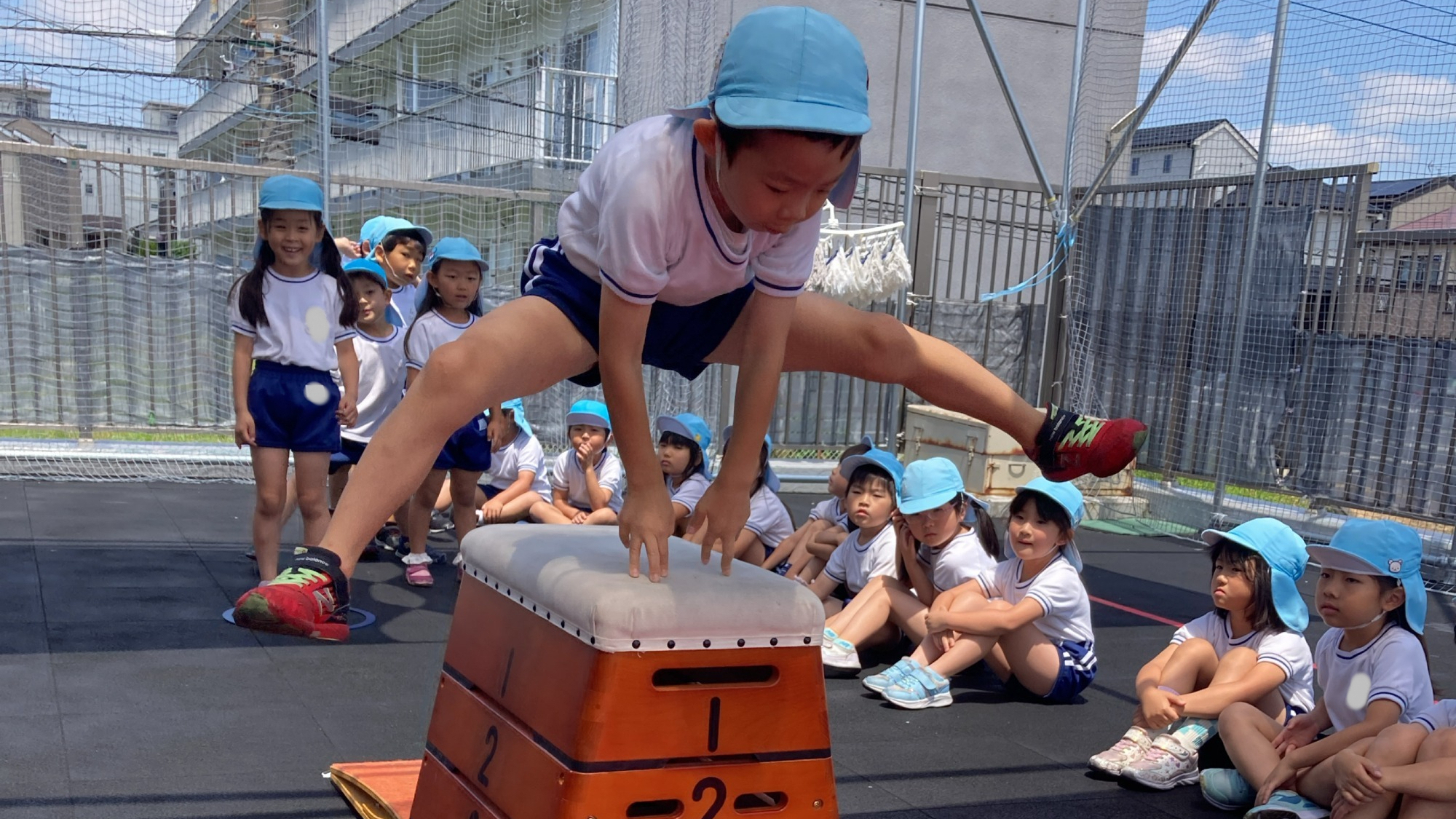 専門の体育講師と幼児組は体育を通じて、マットや鉄棒等いろいろな運動にチャレンジします。