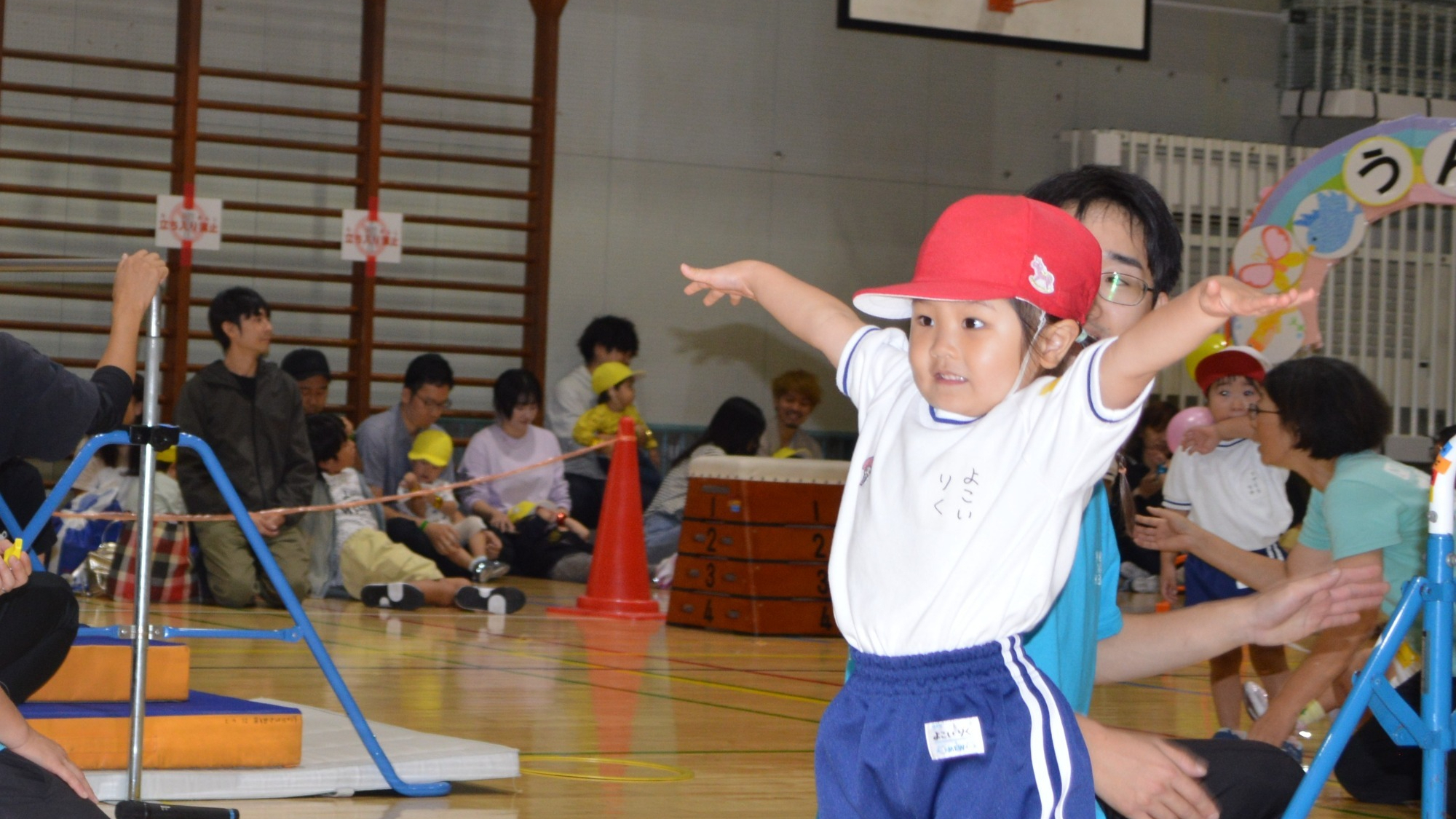 専門の体育講師と幼児組は体育を通じて、マットや鉄棒等いろいろな運動にチャレンジします。